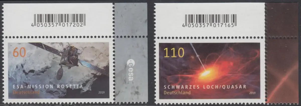 BUND 2019 Michel-Nummer 3476-3477 postfrisch SATZ(2) EINZELMARKEN ECKRÄNDER oben rechts