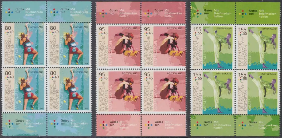 BUND 2020 Michel-Nummer 3542-3544 postfrisch SATZ(3) BLÖCKE RÄNDER oben/unten