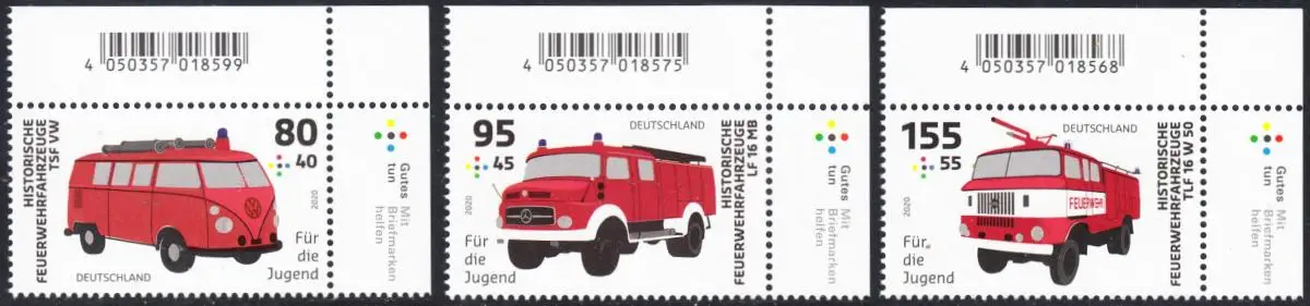 BUND 2020 Michel-Nummer 3557-3559 postfrisch SATZ(3) EINZELMARKEN ECKRÄNDER oben rechts