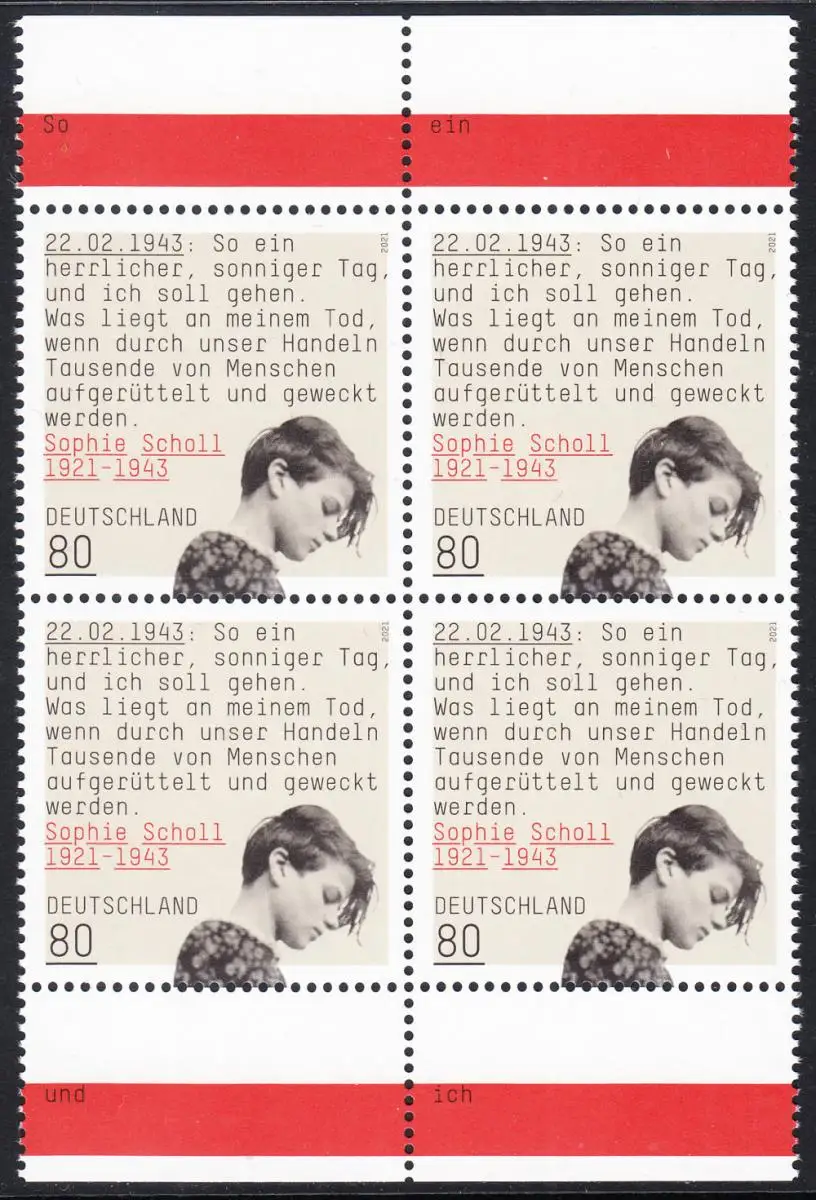 BUND 2021 Michel-Nummer 3606 postfrisch BLOCKRÄNDER unten/oben