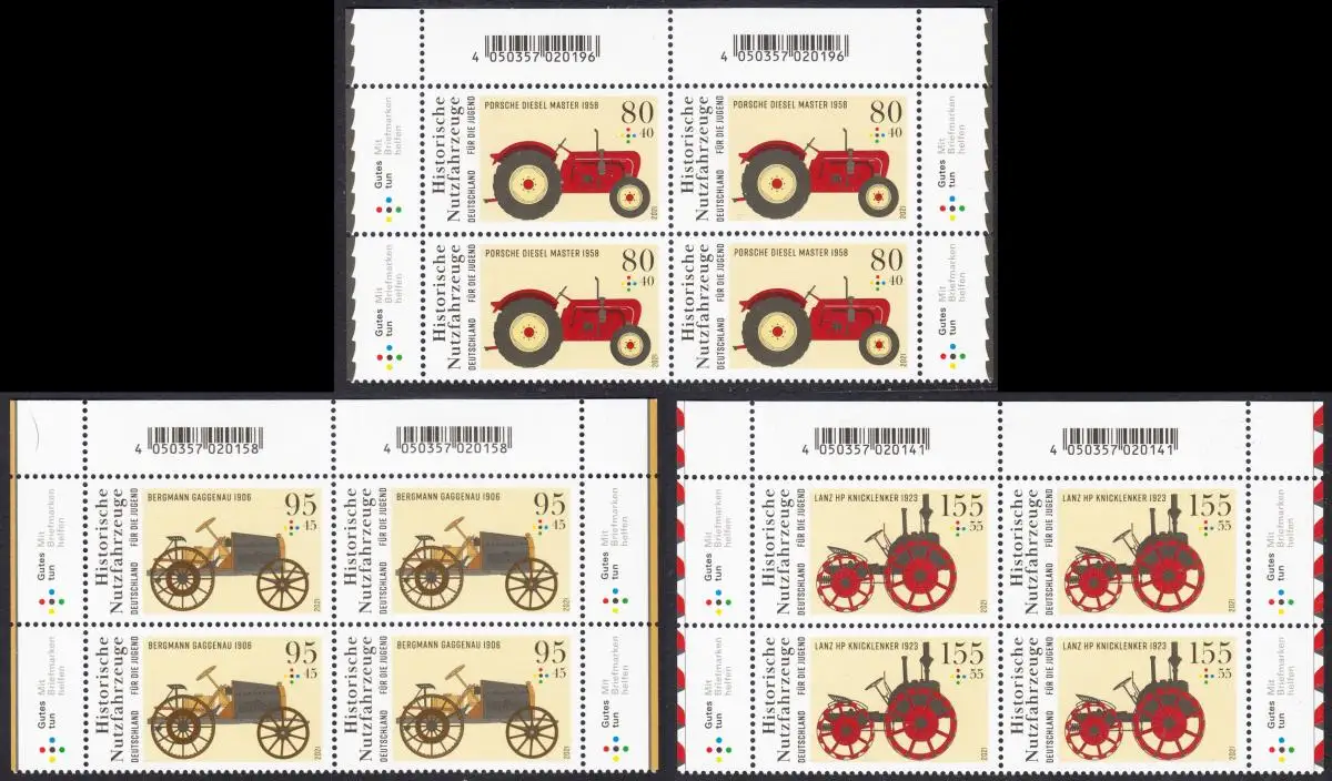BUND 2021 Michel-Nummer 3618-3620 postfrisch SATZ(3) BLÖCKE ECKRÄNDER oben rechts/links