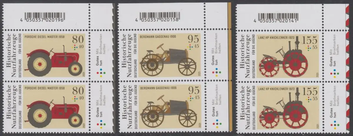 BUND 2021 Michel-Nummer 3618-3620 postfrisch SATZ(3) vert.PAARE ECKRÄNDER oben rechts