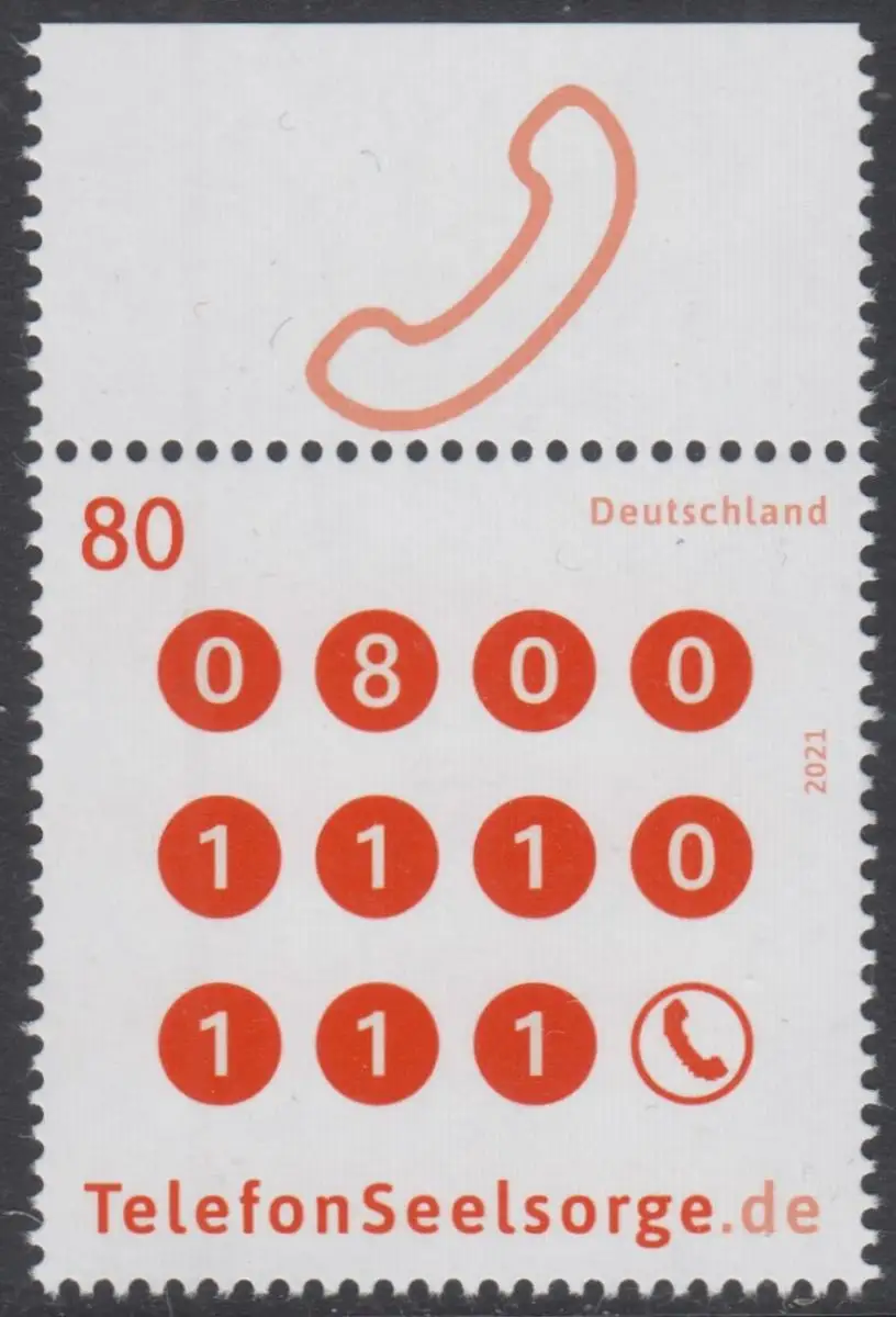 BUND 2021 Michel-Nummer 3627 postfrisch EINZELMARKE RAND oben (c)