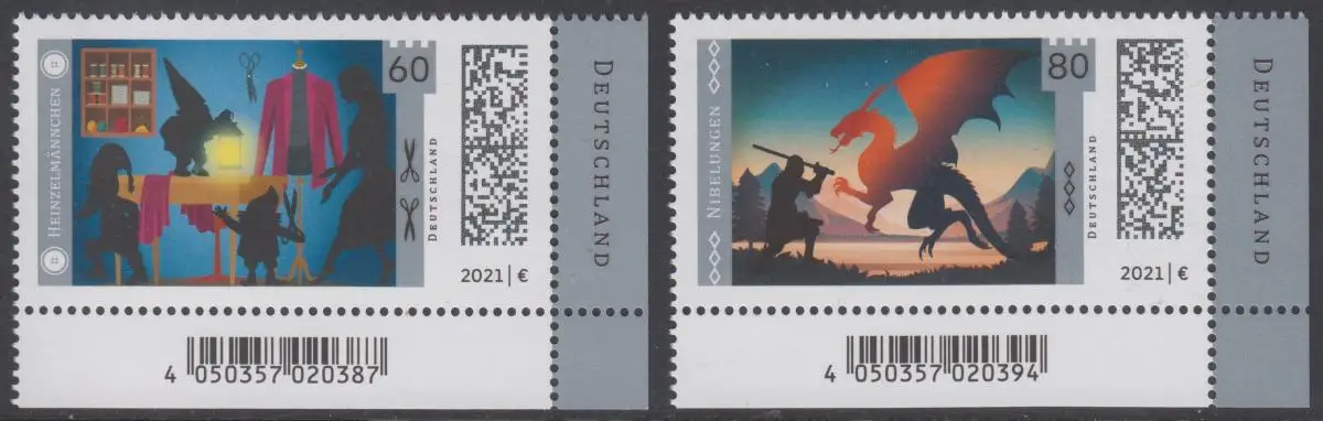 BUND 2021 Michel-Nummer 3631-3632 postfrisch SATZ(2) EINZELMARKEN ECKRÄNDER unten rechts