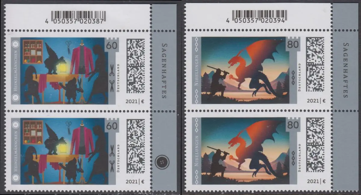 BUND 2021 Michel-Nummer 3631-3632 postfrisch SATZ(2) vert.PAAR ECKRÄNDER oben rechts