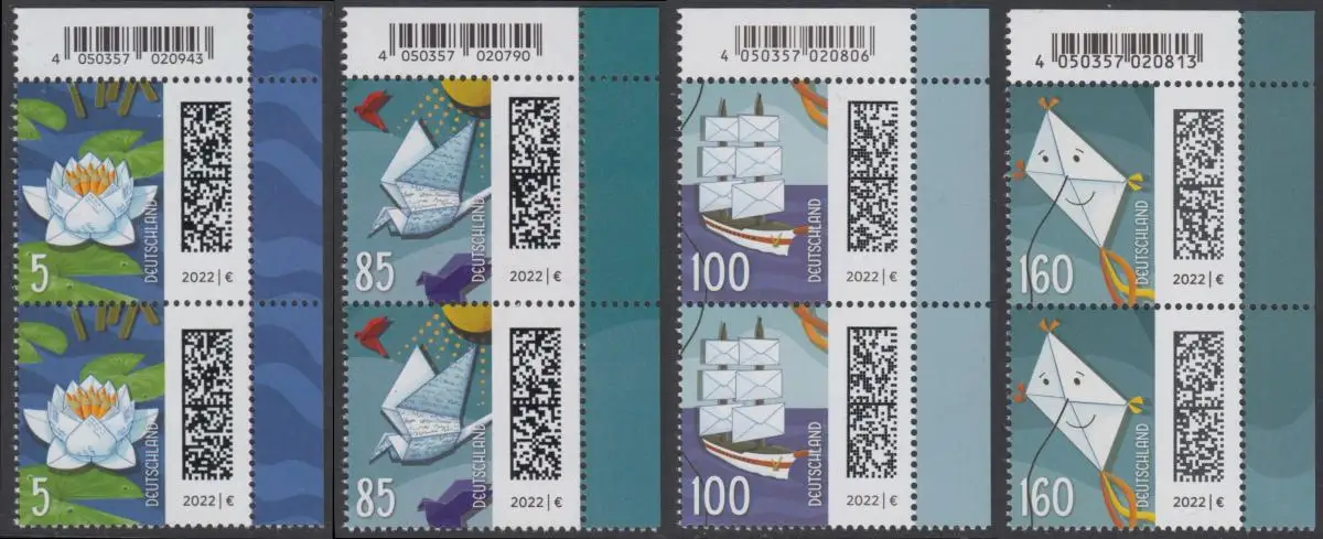 BUND 2021 Michel-Nummer 3644-3647 postfrisch SATZ(4) vert.PAAR ECKRÄNDER oben rechts