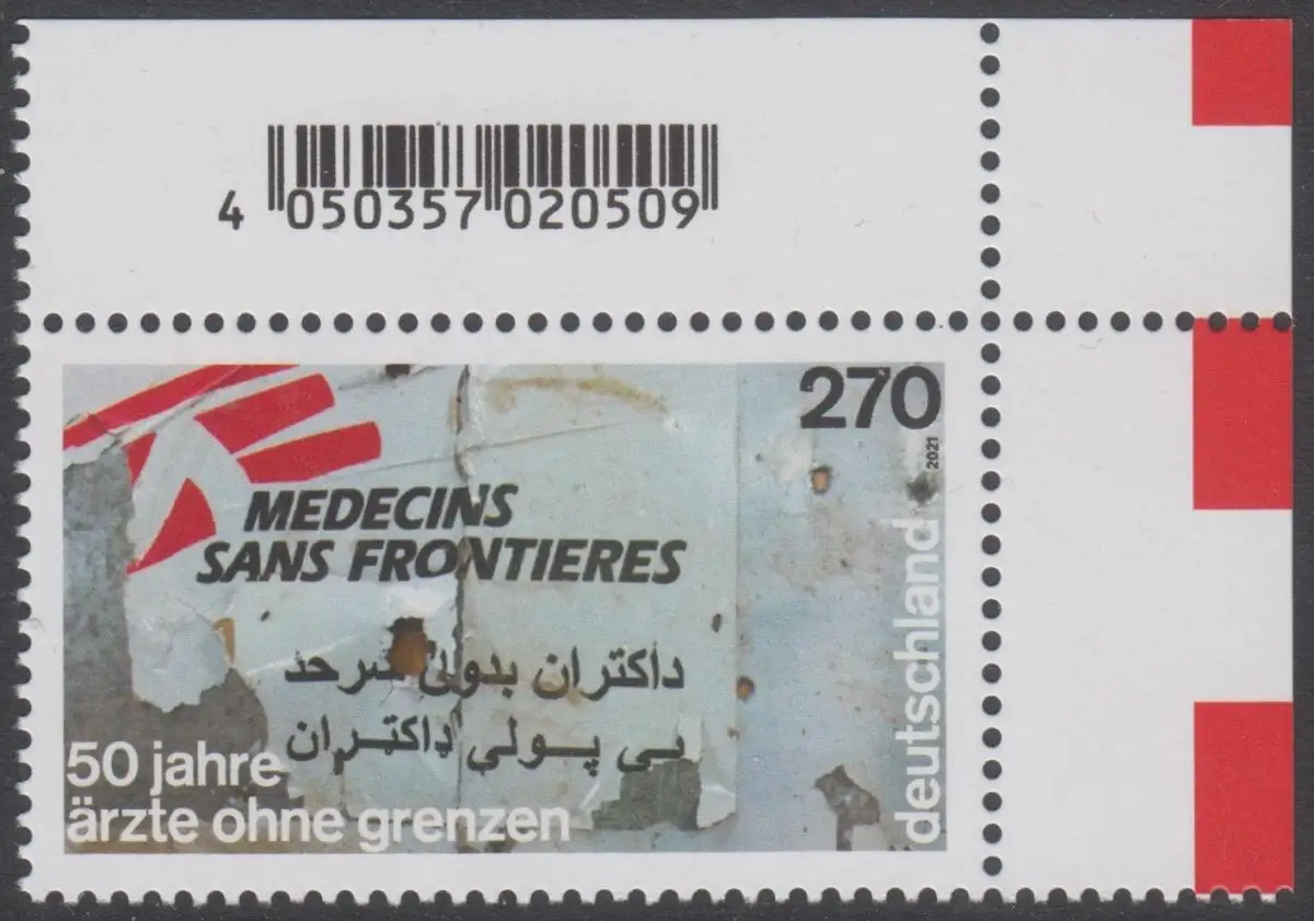 BUND 2021 Michel-Nummer 3650 postfrisch EINZELMARKE ECKRAND oben rechts