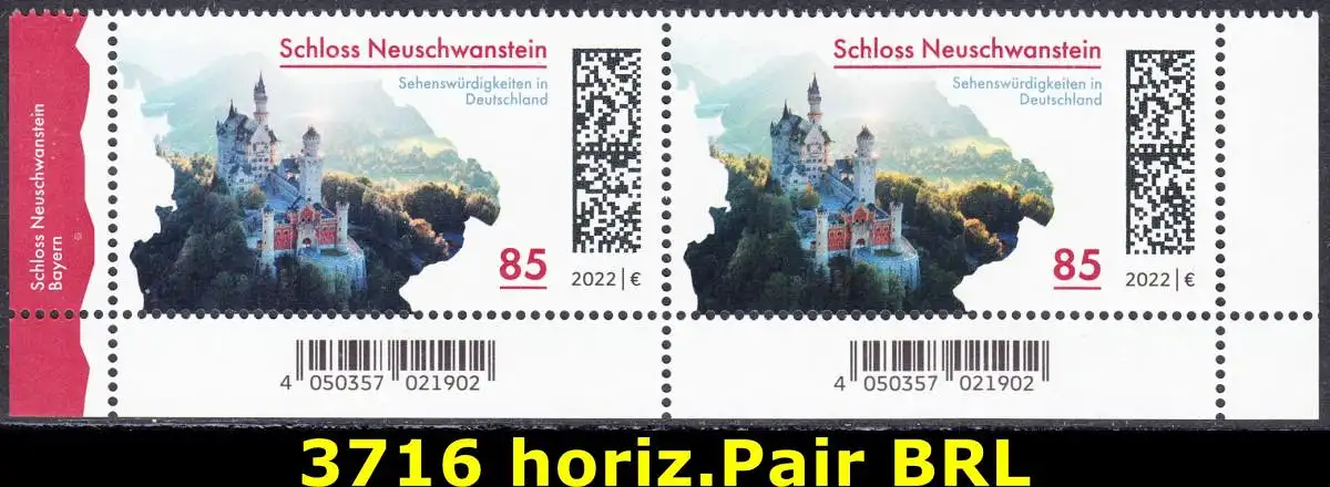 BUND 2022 Michel-# 3716 postfrisch horiz.PAAR ECKRÄNDER unten rechts/links