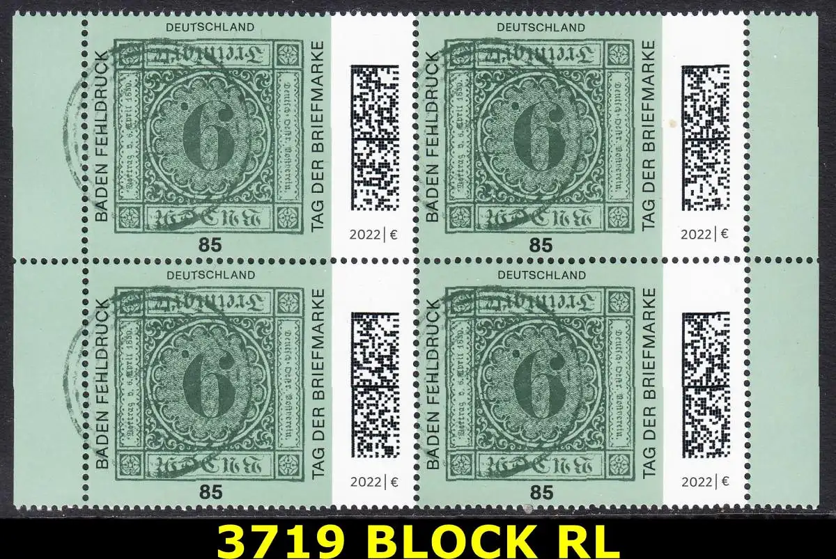 BUND 2022 Michel-# 3719 postfrisch BLOCK RÄNDER rechts/links