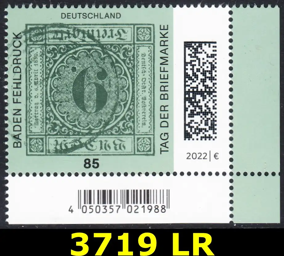 BUND 2022 Michel-# 3719 postfrisch EINZELMARKE ECKRAND unten rechts