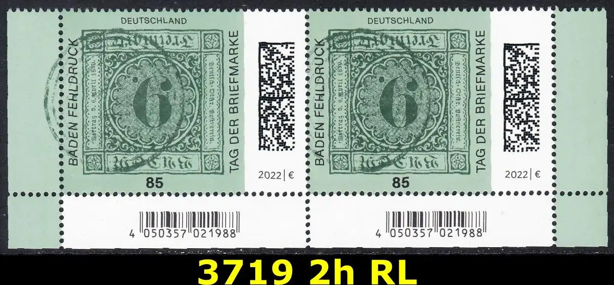 BUND 2022 Michel-# 3719 postfrisch horiz.PAAR ECKRÄNDER unten rechts/links