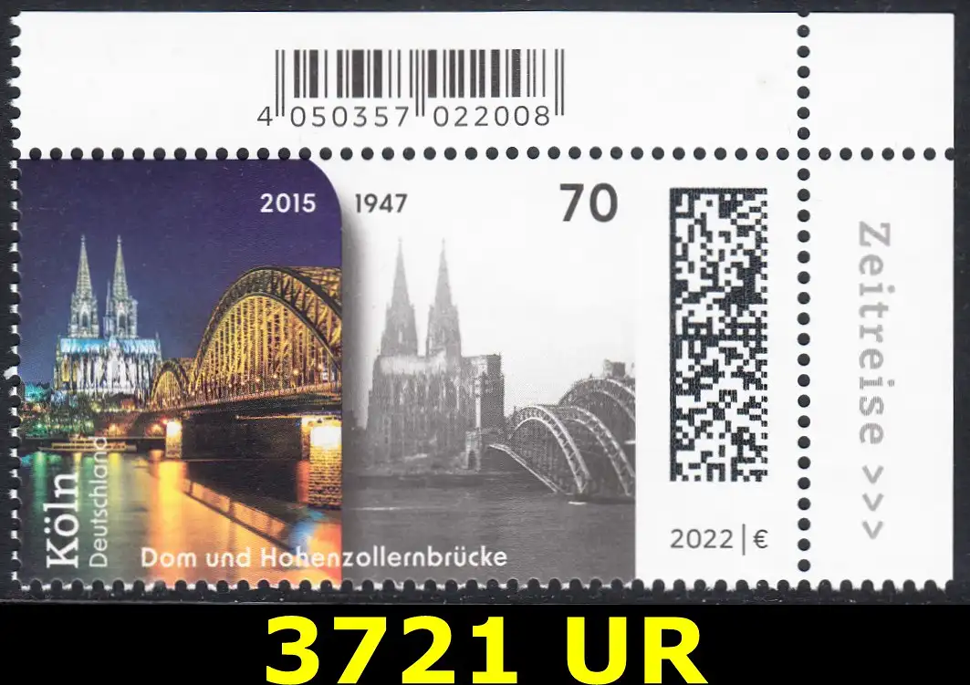 BUND 2022 Michel-# 3721 postfrisch EINZELMARKE ECKRAND oben rechts