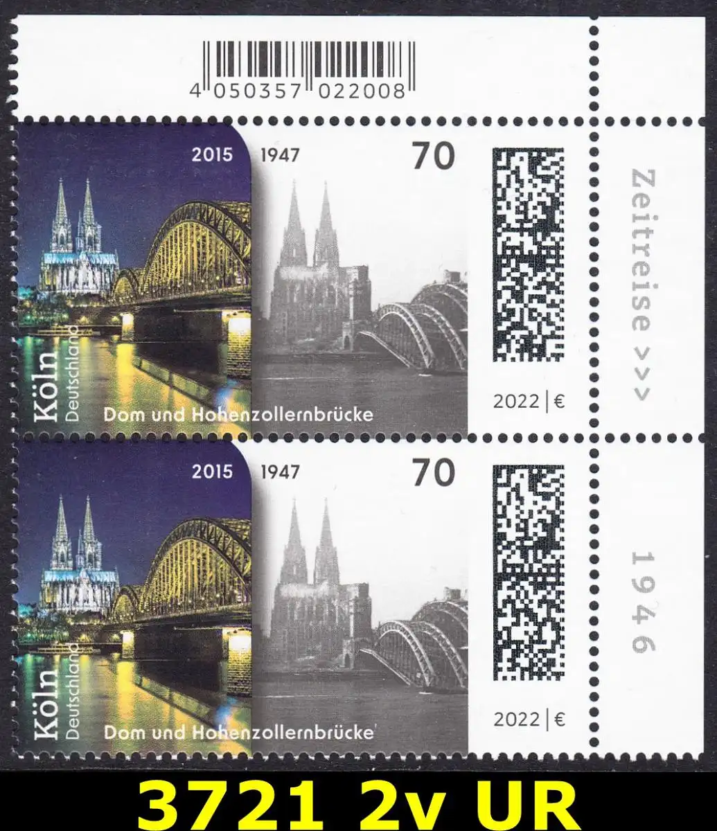 BUND 2022 Michel-# 3721 postfrisch vert.PAAR ECKRRAND oben rechts