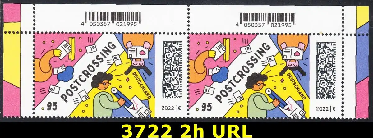 BUND 2022 Michel-# 3722 postfrisch horiz.PAAR ECKRÄNDER oben rechts/links