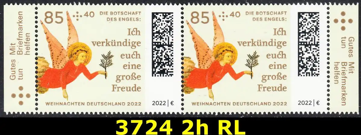 BUND 2022 Michel-# 3724 postfrisch horiz.PAAR RÄNDER rechts/links
