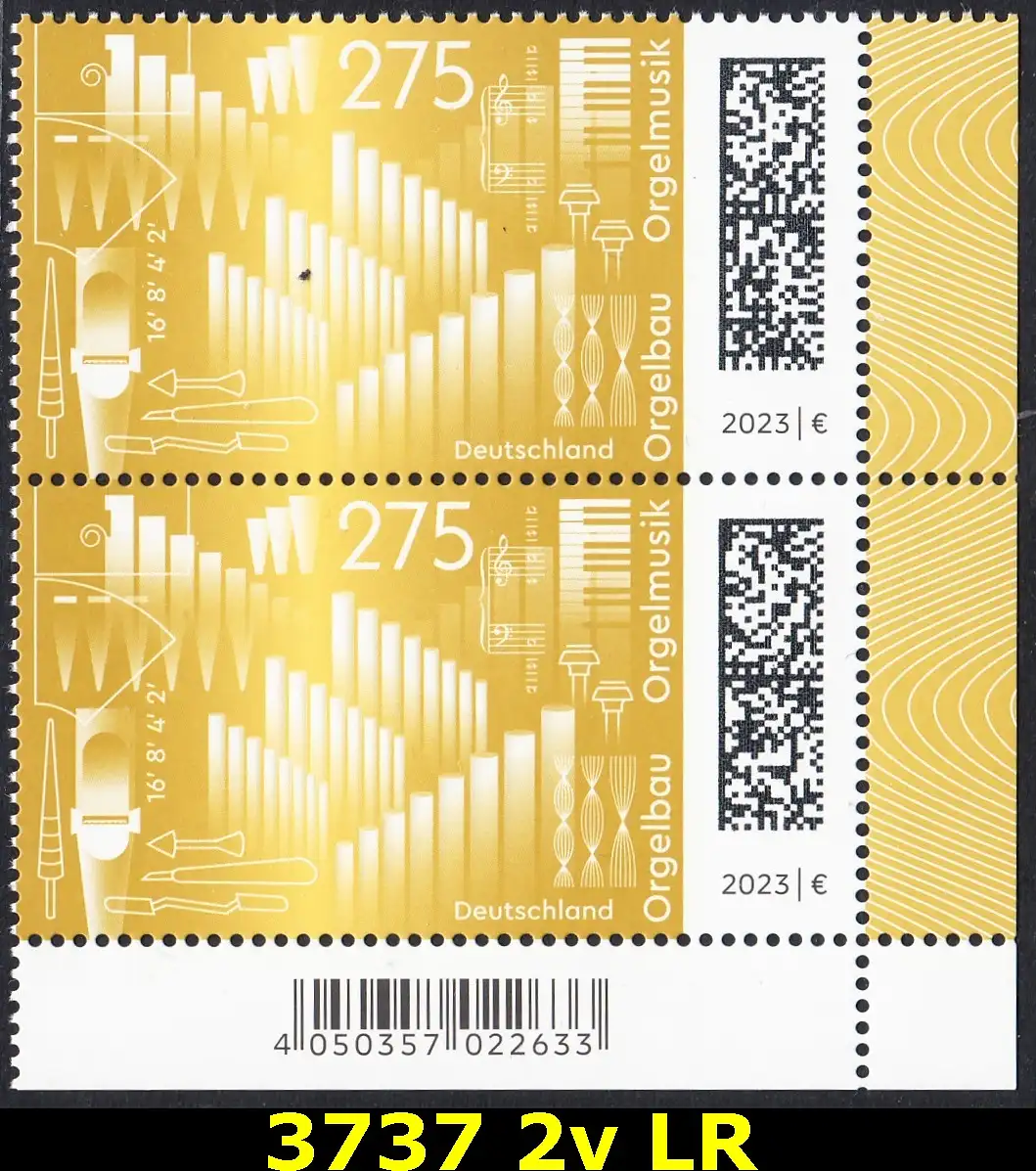 BUND 2023 Michel-# 3737 postfrisch vert.PAAR ECKRAND unten rechts