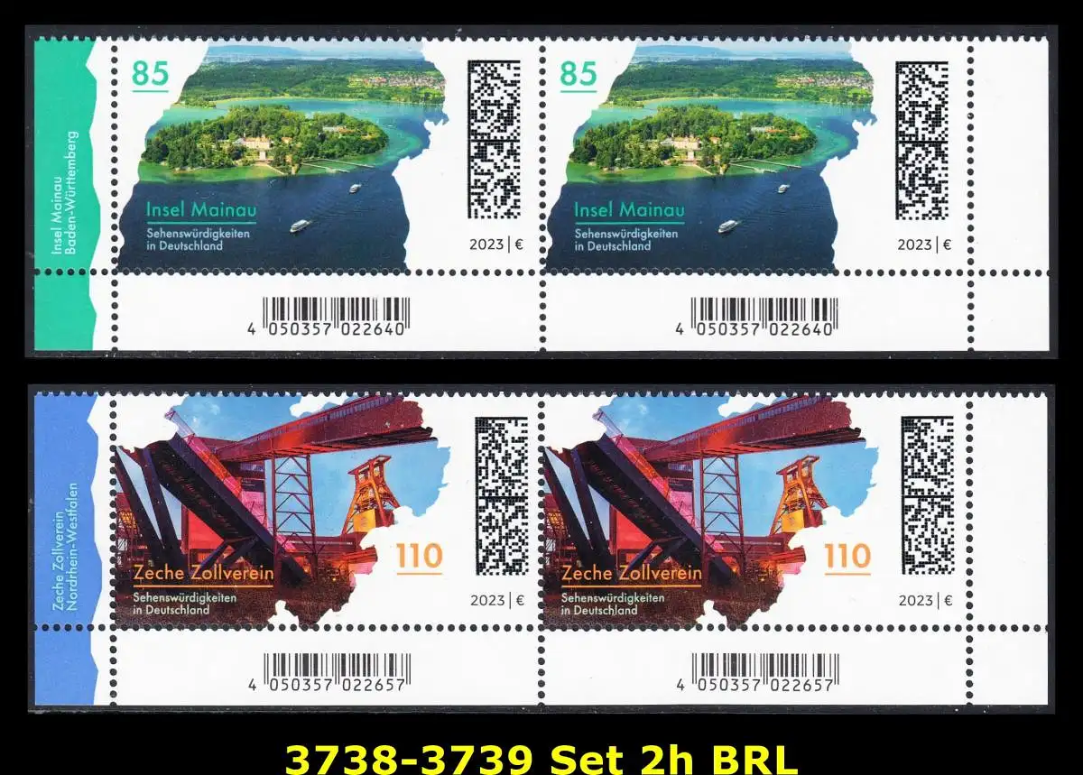 BUND 2023 Michel-# 3738-3739 postfrisch SATZ(2) horiz.PAARE ECKRÄNDER unten rechts/links
