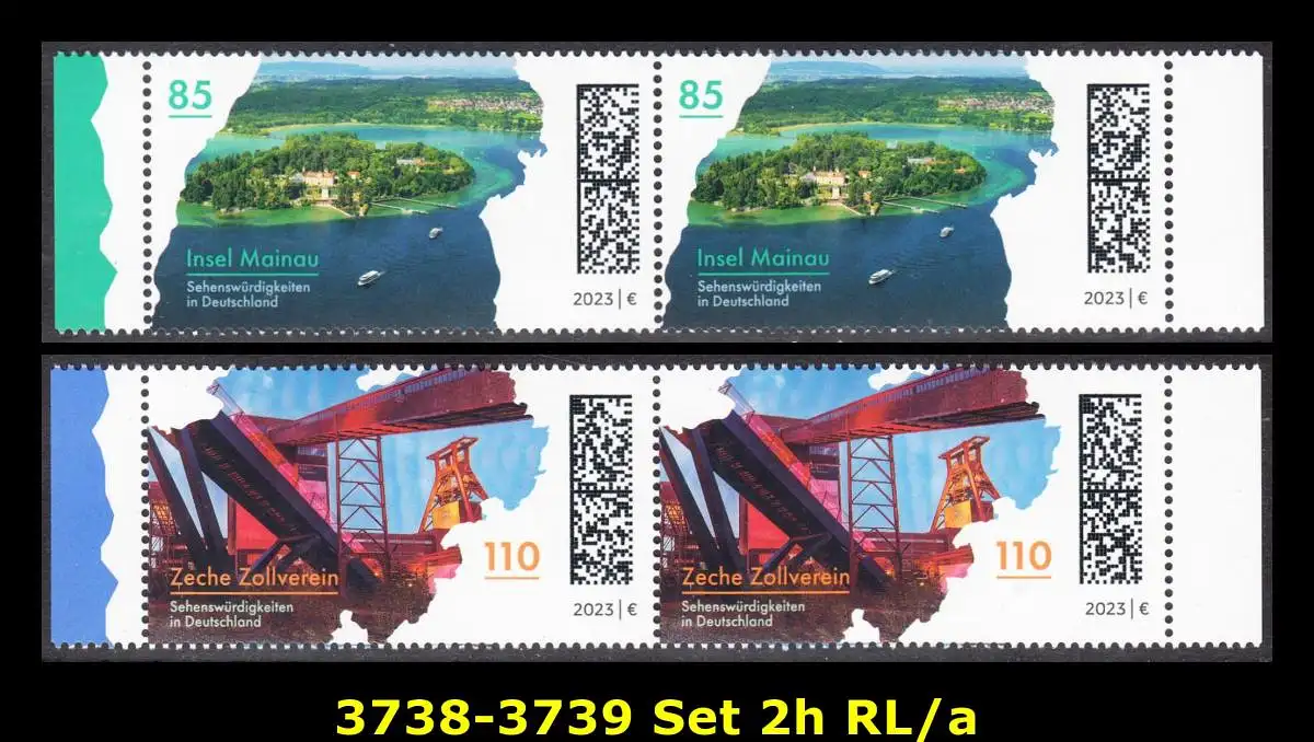 BUND 2023 Michel-# 3738-3739 postfrisch SATZ(2) horiz.PAARE RÄNDER rechts/links (a)