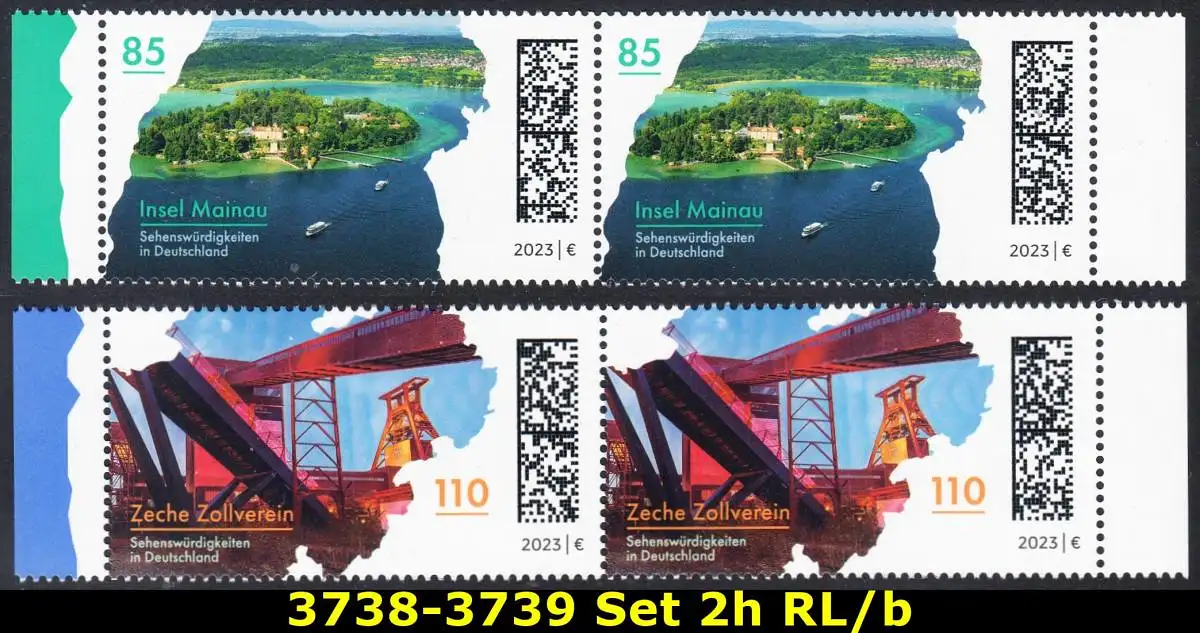 BUND 2023 Michel-# 3738-3739 postfrisch SATZ(2) horiz.PAARE RÄNDER rechts/links (b)