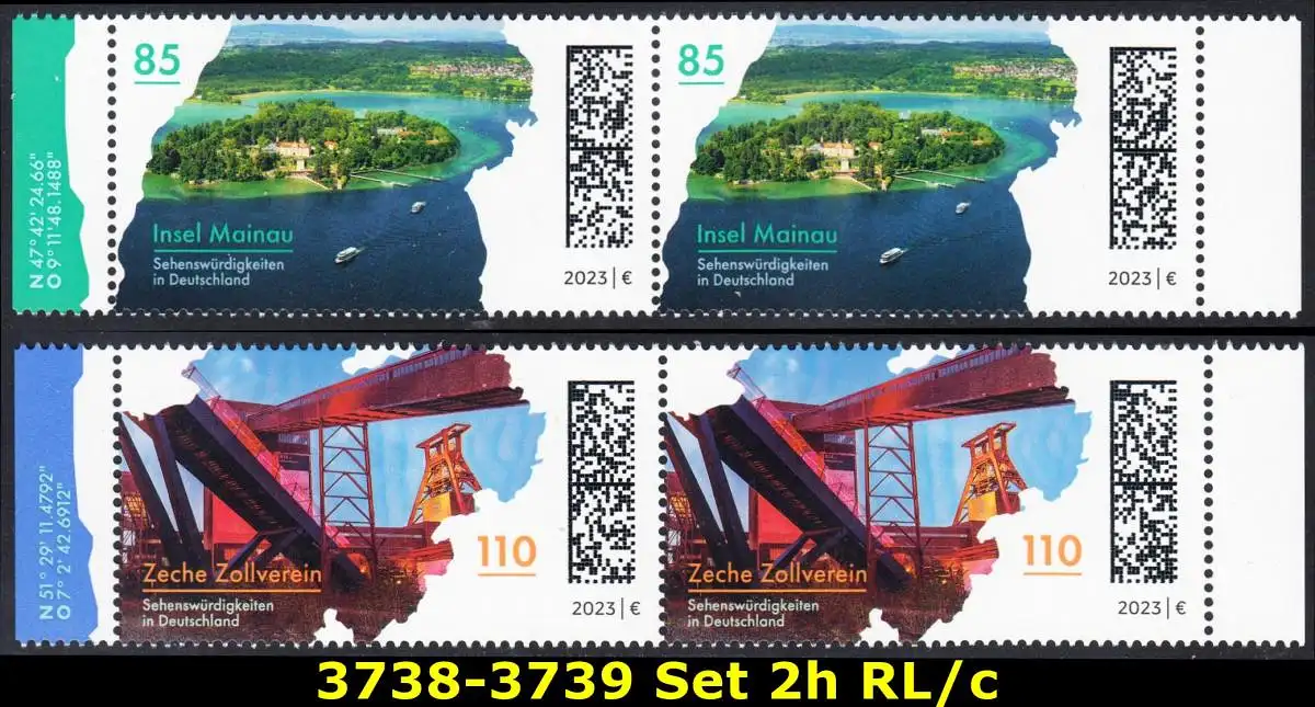 BUND 2023 Michel-# 3738-3739 postfrisch SATZ(2) horiz.PAARE RÄNDER rechts/links (c)