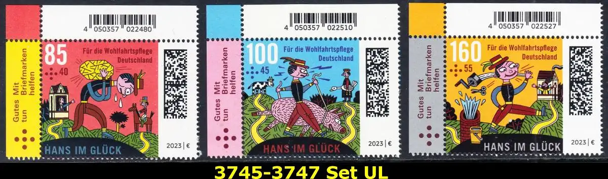 BUND 2023 Michel-# 3745-3747 postfrisch SATZ(3) EINZELMARKEN ECKRÄNDER oben links