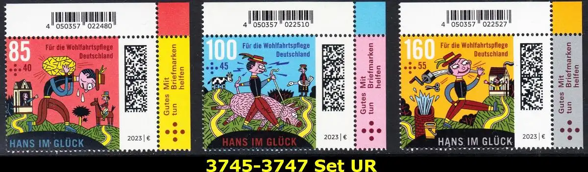 BUND 2023 Michel-# 3745-3747 postfrisch SATZ(3) EINZELMARKEN ECKRÄNDER oben rechts