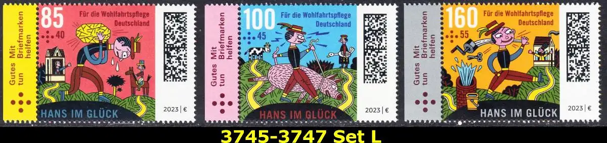 BUND 2023 Michel-# 3745-3747 postfrisch SATZ(3) EINZELMARKEN RÄNDER links
