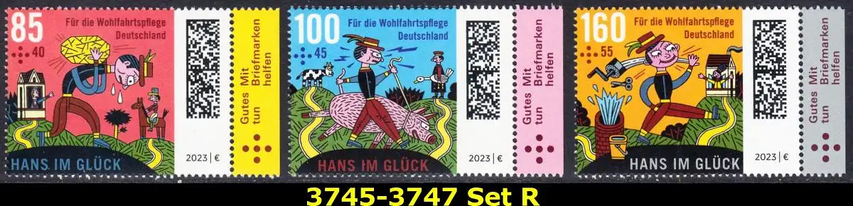 BUND 2023 Michel-# 3745-3747 postfrisch SATZ(3) EINZELMARKEN RÄNDER rechts