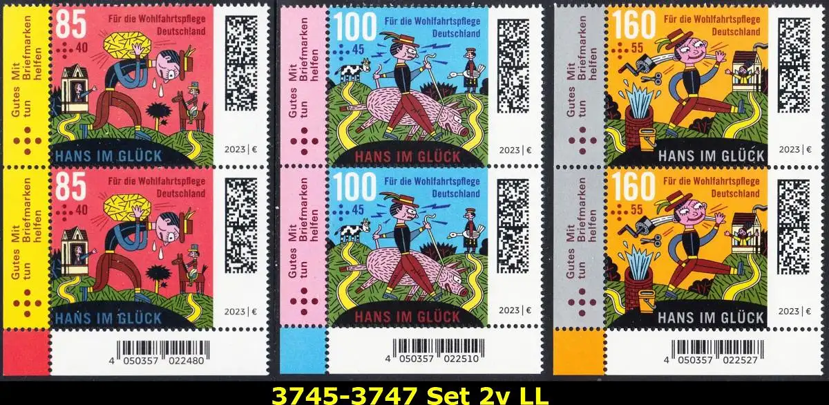 BUND 2023 Michel-# 3745-3747 postfrisch SATZ(3) vert.PAARE ECKRÄNDER unten links