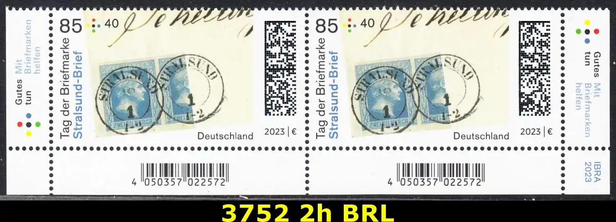 BUND 2023 Michel-# 3752 postfrisch horiz.PAAR ECKRÄNDER unten rechts/links