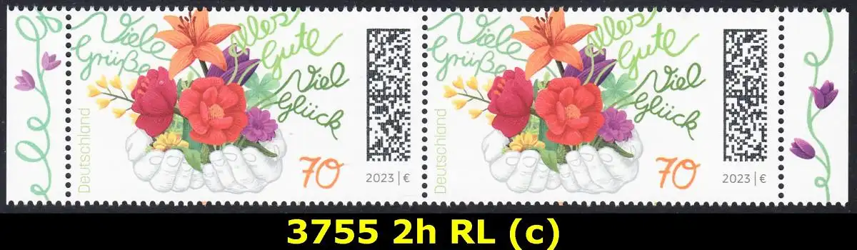 BUND 2023 Michel-# 3755 postfrisch horiz.PAAR RÄNDER rechts/links (c)