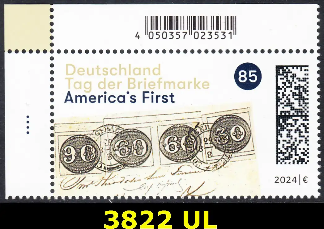 BUND 2024 Michel-# 3822 postfrisch EINZELMARKE ECKRAND oben links
