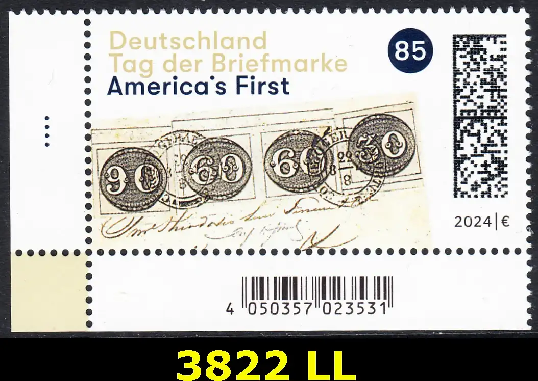 BUND 2024 Michel-# 3822 postfrisch EINZELMARKE ECKRAND unten links