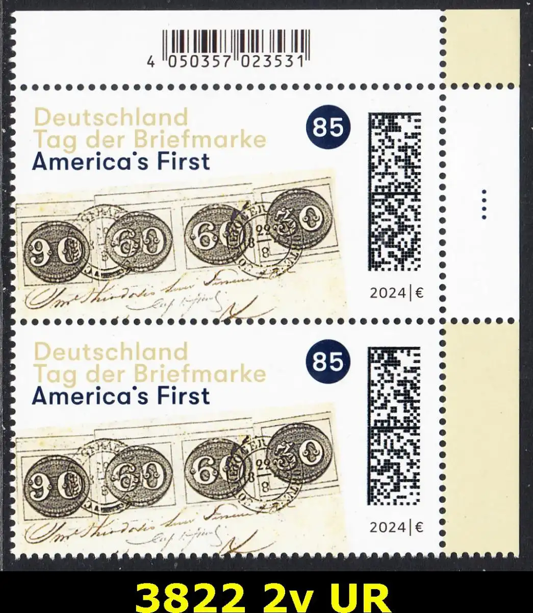 BUND 2024 Michel-# 3822 postfrisch vert.PAAR ECKRAND oben rechts