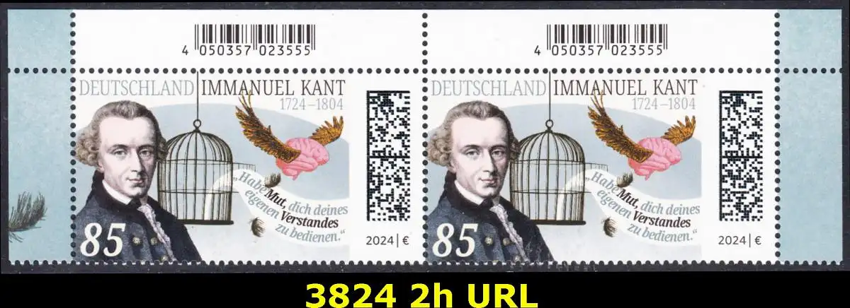 BUND 2024 Michel-# 3824 postfrisch horiz.PAAR ECKRÄNDER oben rechts/links
