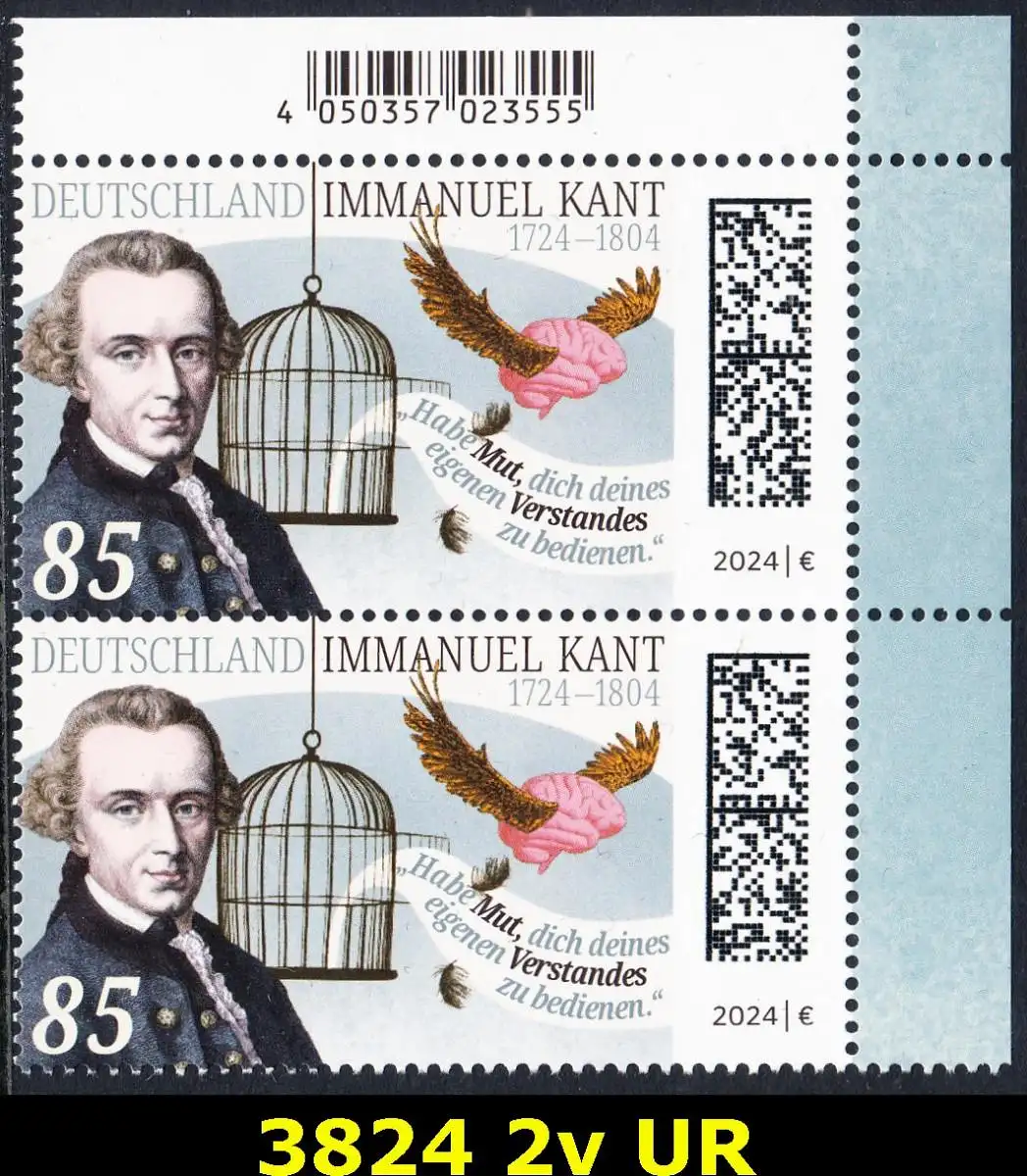 BUND 2024 Michel-# 3824 postfrisch vert.PAAR ECKRAND oben rechts