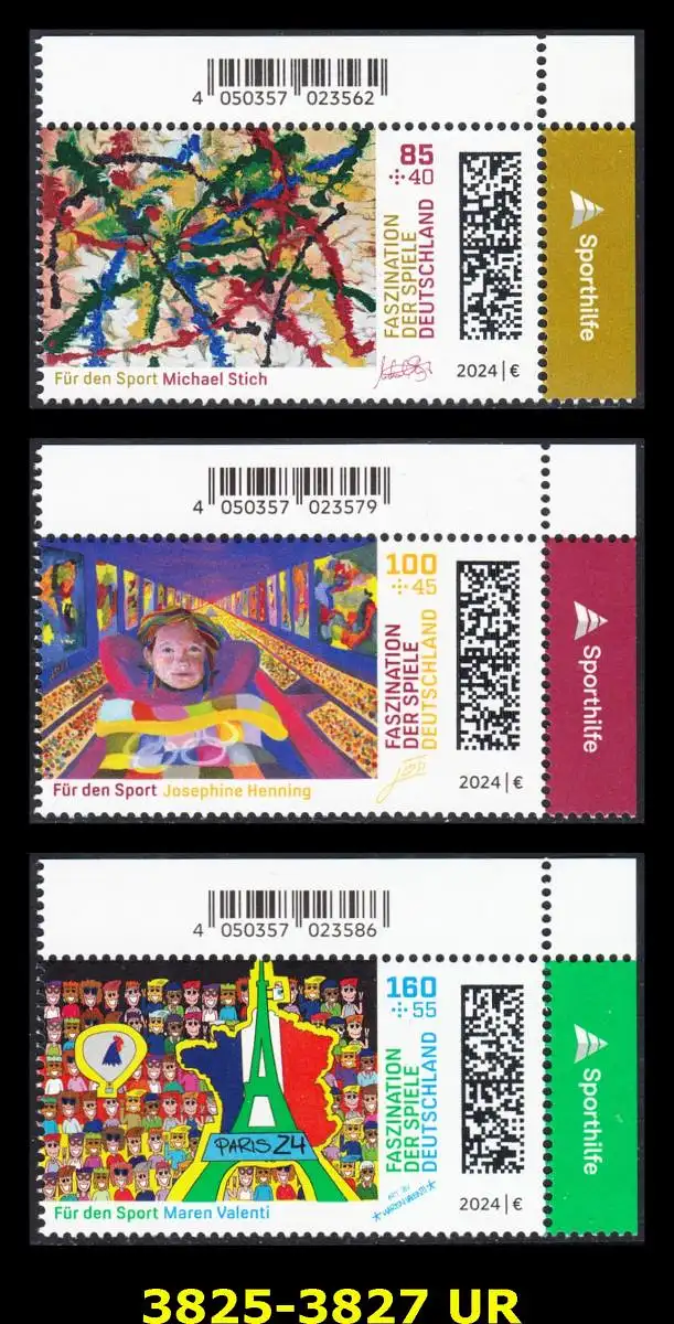 BUND 2024 Michel-# 3825-3827 postfrisch SATZ(3) EINZELMARKEN ECKRÄNDER oben rechts