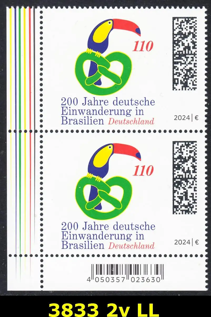 BUND 2024 Michel-# 3833 postfrisch vert.PAAR ECKRAND unten links