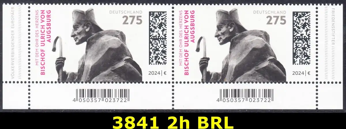 BUND 2024 Michel-# 3841 postfrisch horiz.PAAR ECKRÄNDER unten rechts/links
