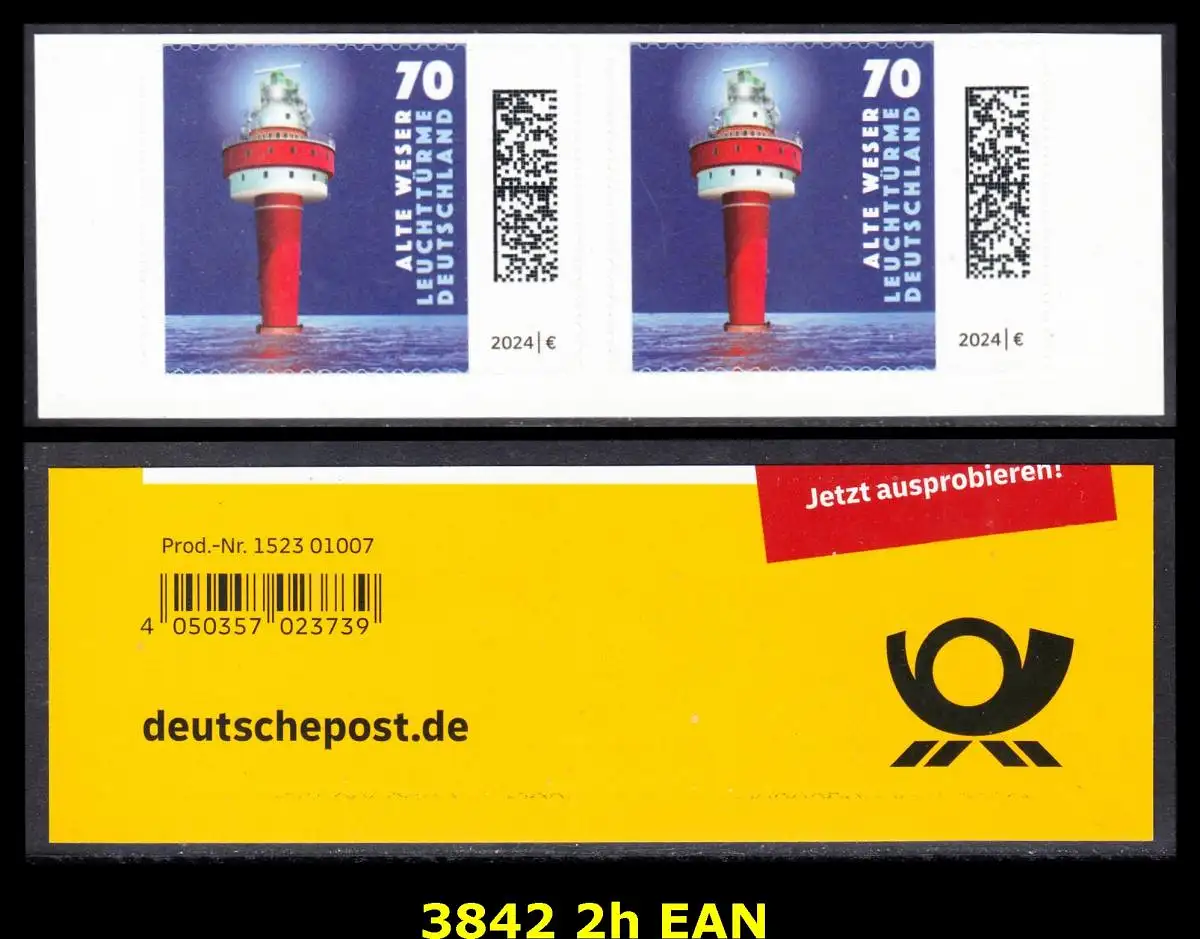 BUND 2024 Michel-# 3842 postfrisch horiz.PAAR w/ EAN (selbstklebend)