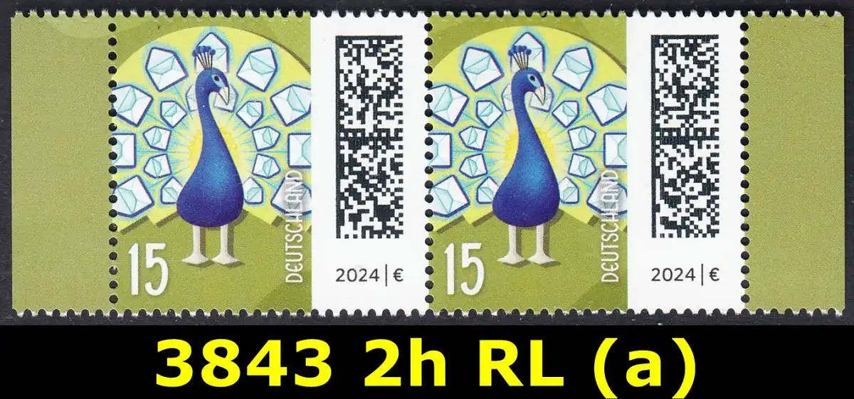 BUND 2024 Michel-# 3843 postfrisch horiz.PAAR RÄNDER rechts/links (a)
