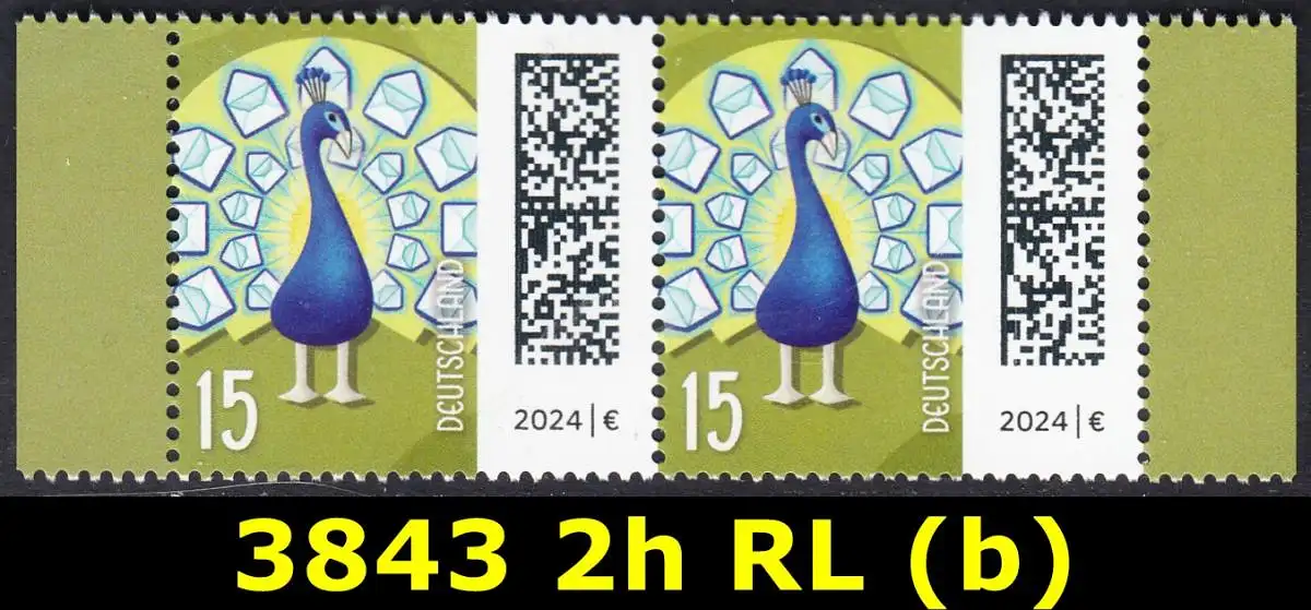 BUND 2024 Michel-# 3843 postfrisch horiz.PAAR RÄNDER rechts/links (b)