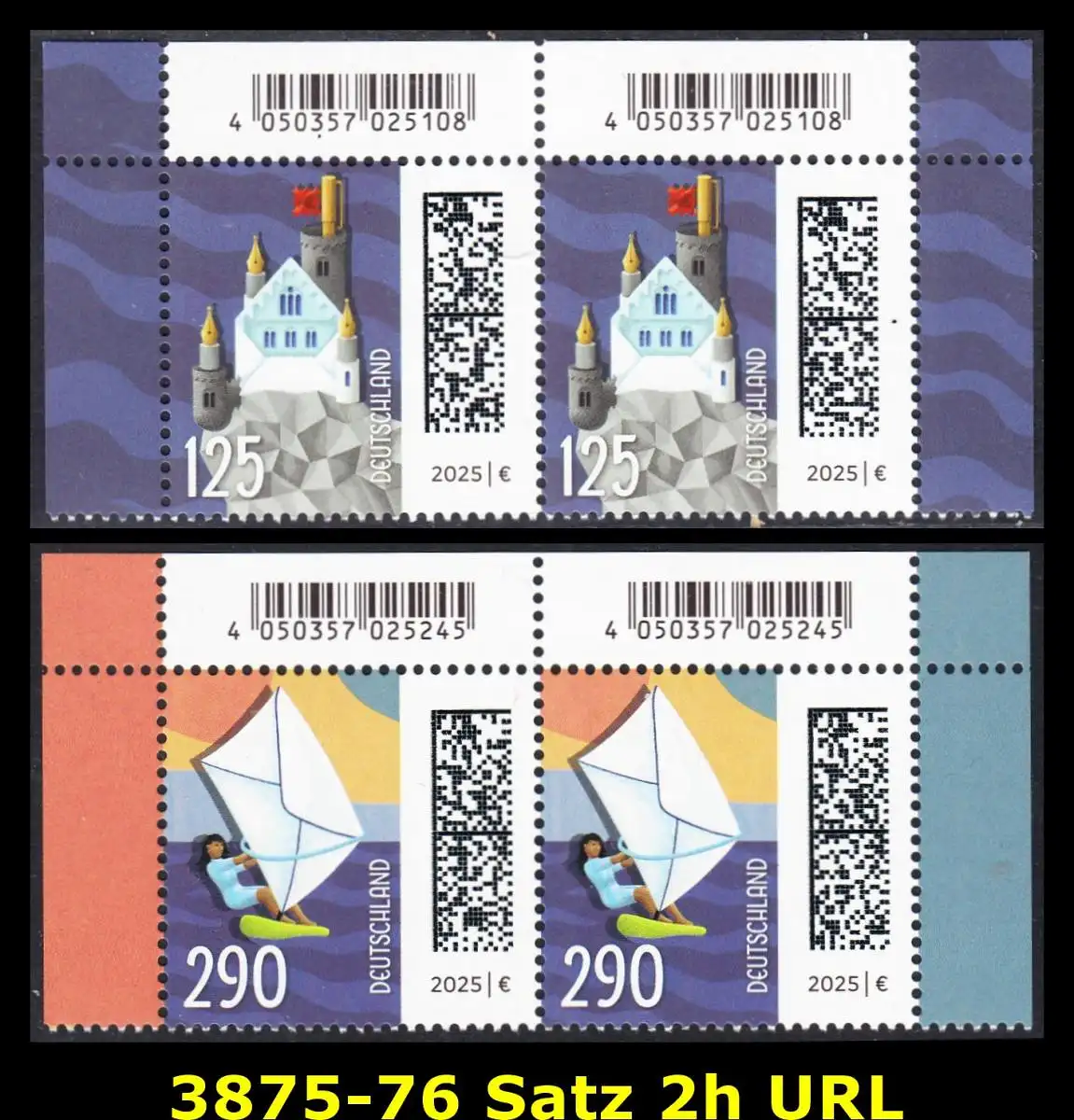 BUND 2025 Michel-# 3875-3876 postfrisch SATZ(2) horiz.PAARE ECKRÄNDER oben rechts & links