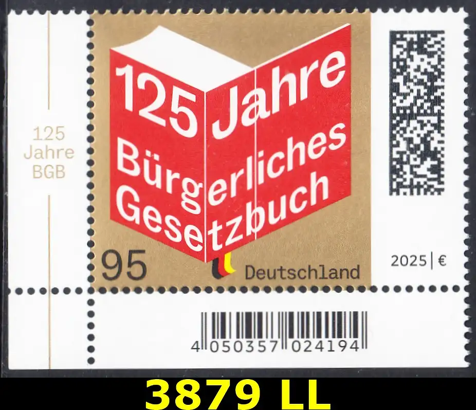 BUND 2025 Michel-# 3879 postfrisch EINZELMARKE ECKRAND unten links