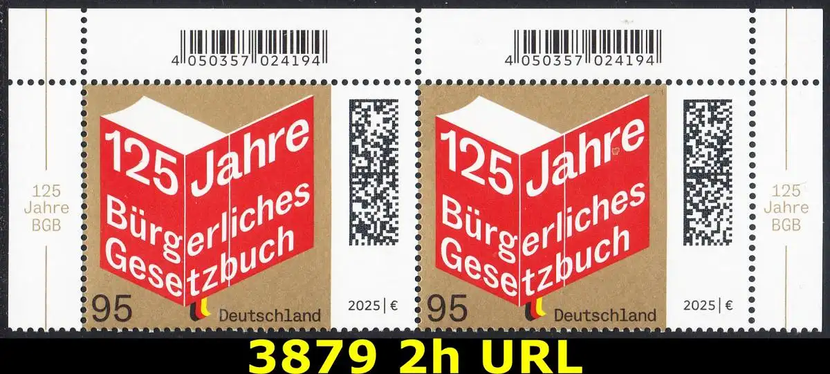 BUND 2025 Michel-# 3879 postfrisch horiz.PAAR ECKRÄNDER oben rechts/links
