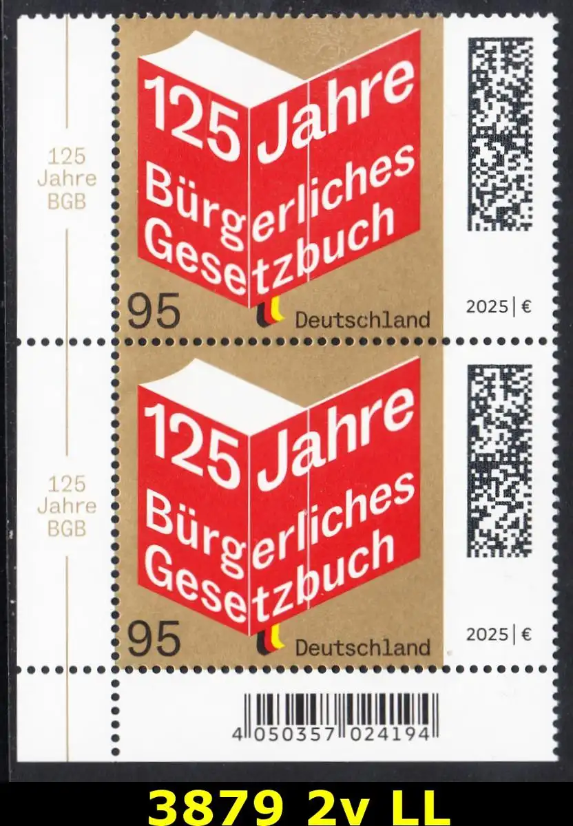 BUND 2025 Michel-# 3879 postfrisch vert.PAAR ECKRAND unten links