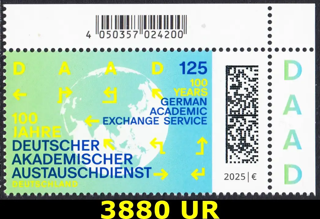 BUND 2025 Michel-# 3880 postfrisch EINZELMARKE ECKRAND oben rechts