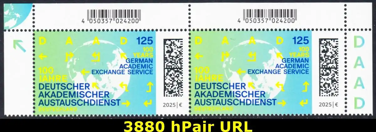 BUND 2025 Michel-# 3880 postfrisch horiz.PAAR ECKRÄNDER oben rechts/links