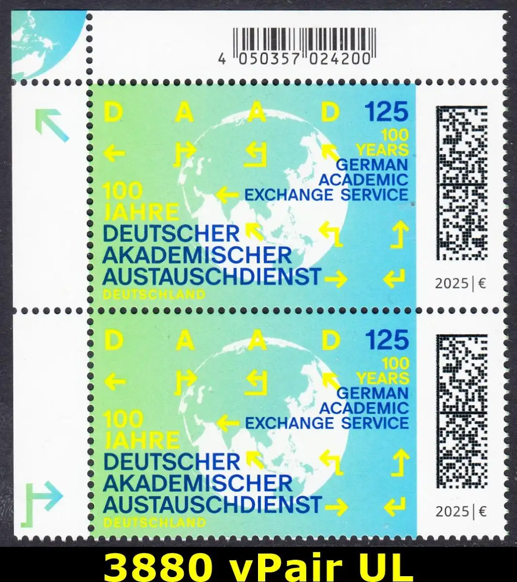 BUND 2025 Michel-# 3880 postfrisch vert.PAAR ECKRAND oben links