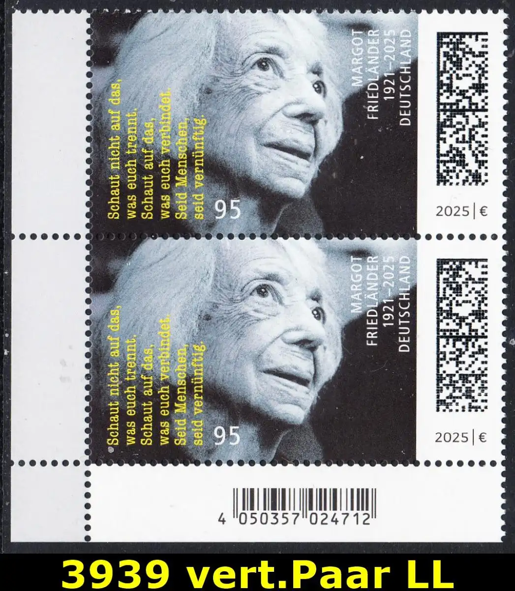 BUND 2025 Michel-# 3939 postfrisch vert.PAAR ECKRAND unten links